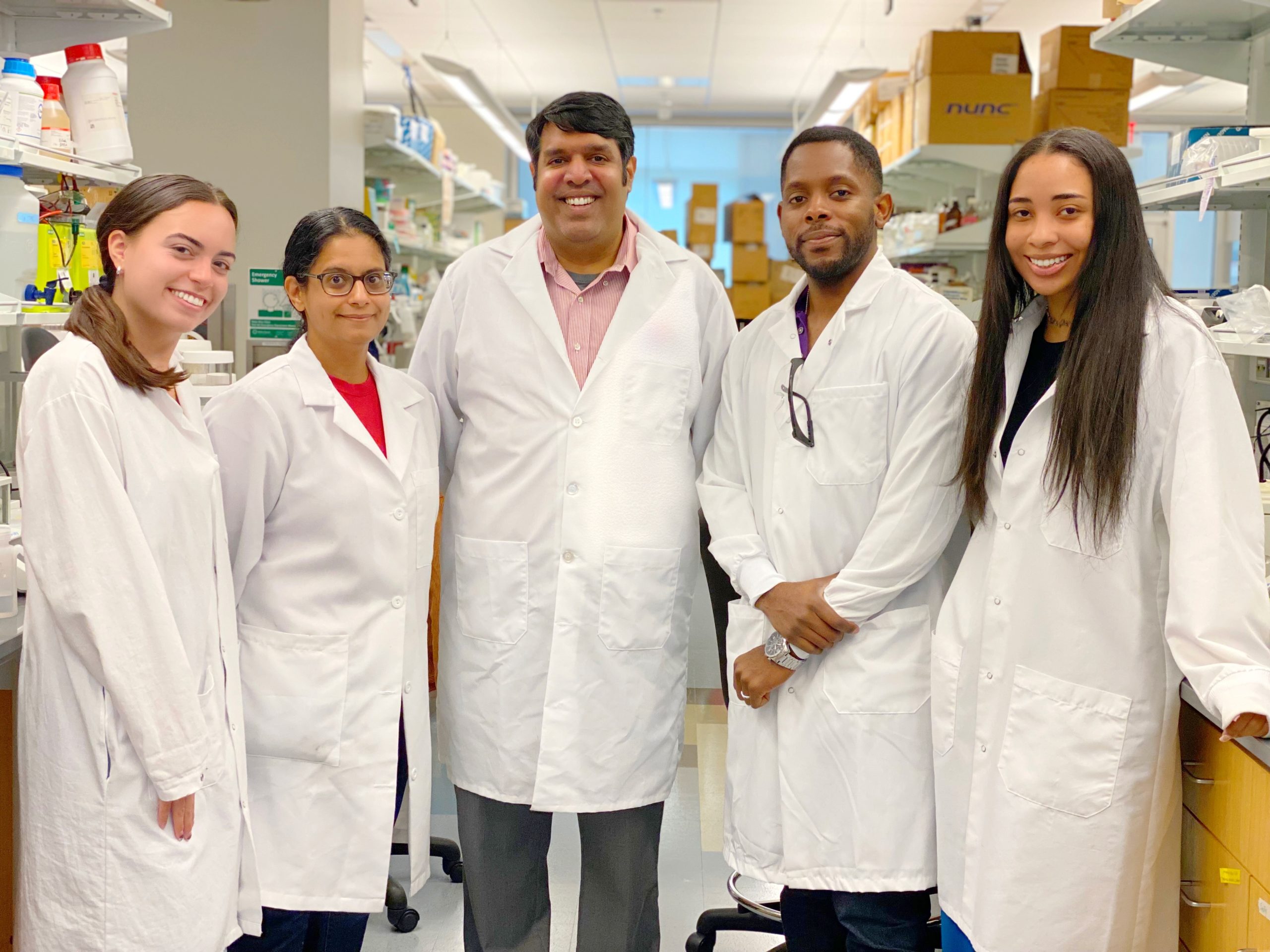 - Sunil Sudhir Raikar (Center) and his research team at Children’s Healthcare of Atlanta-Emory University, CURE Childhood Cancer Grant Recipient