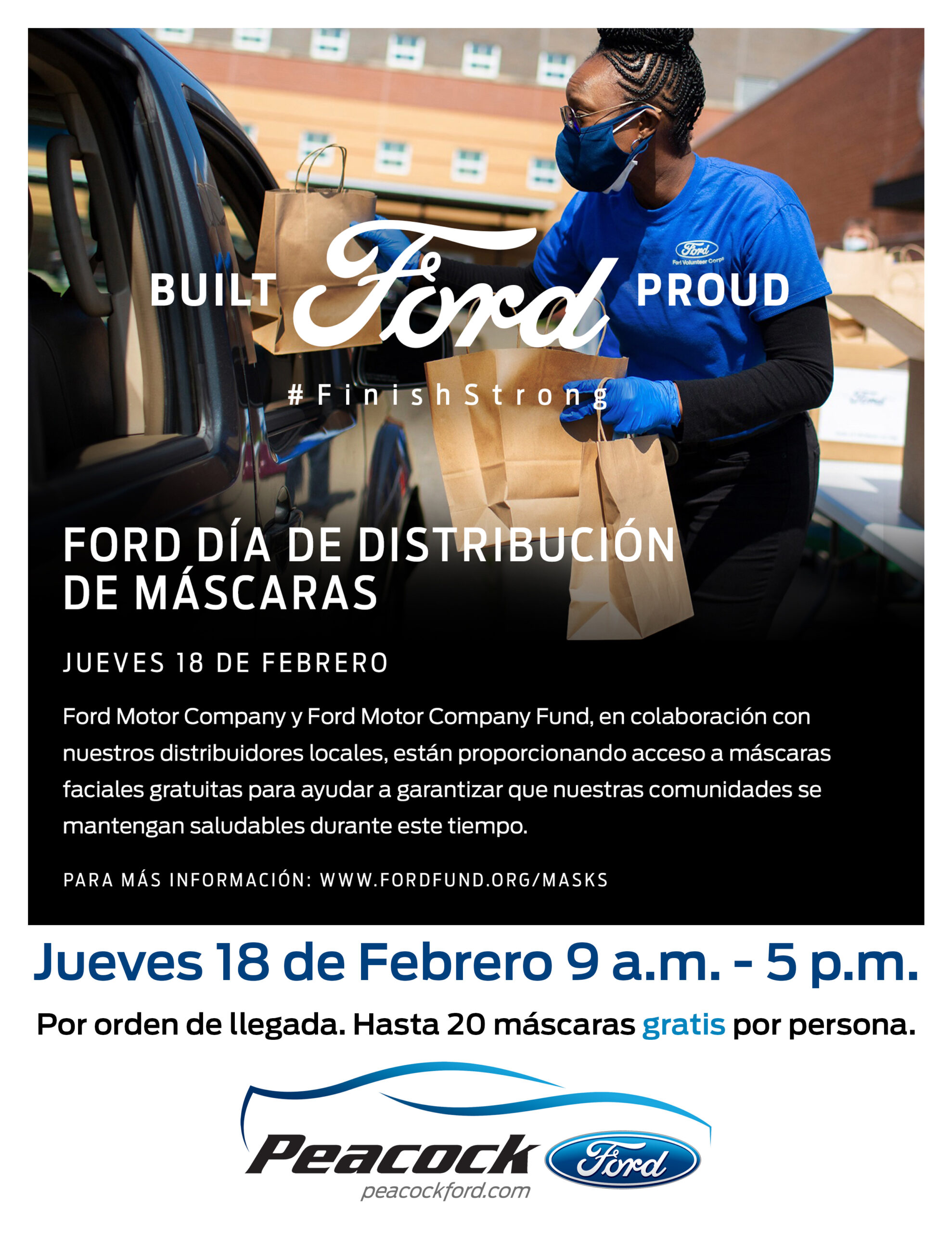 The public is invited to pick up free masks that same day from 9 a.m. to 5 p.m. at the Peacock Ford dealership located at 1875 S. Orlando Ave., Maitland, Fla. There is a limit of 20 free masks per person, while supplies last.