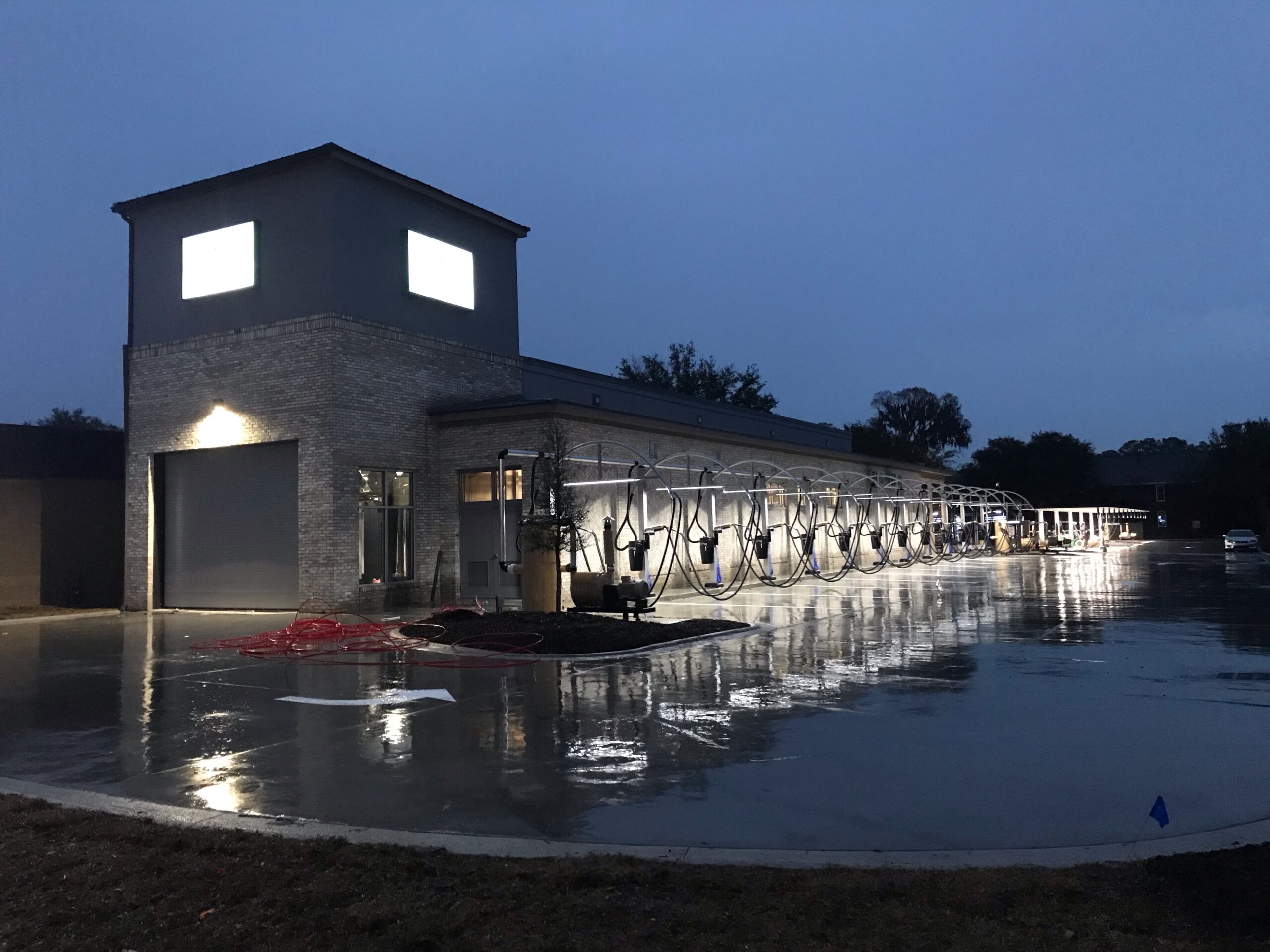 Car wash buildings require special construction techniques, including a foundational slab thicker than that of a typical retail outlet, with properly placed trenches and drains to allow for water runoff. Intricate systems of plumbing and wiring need to be considered to create a satisfying customer experience. The Dewitt Tilton Group happily accepted the challenge and is pleased with the results.