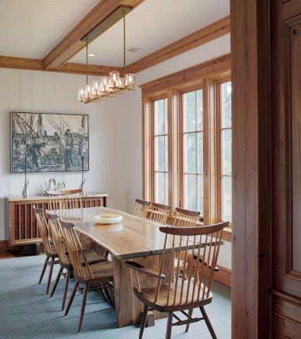 The firm wanted to fill the house with natural light and a breezy vibe, so their design emphasized multiple French doors and included transoms throughout the interior to encourage the flow of light and air. The larger gathering spaces are all connected to the outdoors and the view through adjacent screened porches and large, sliding panel doors.